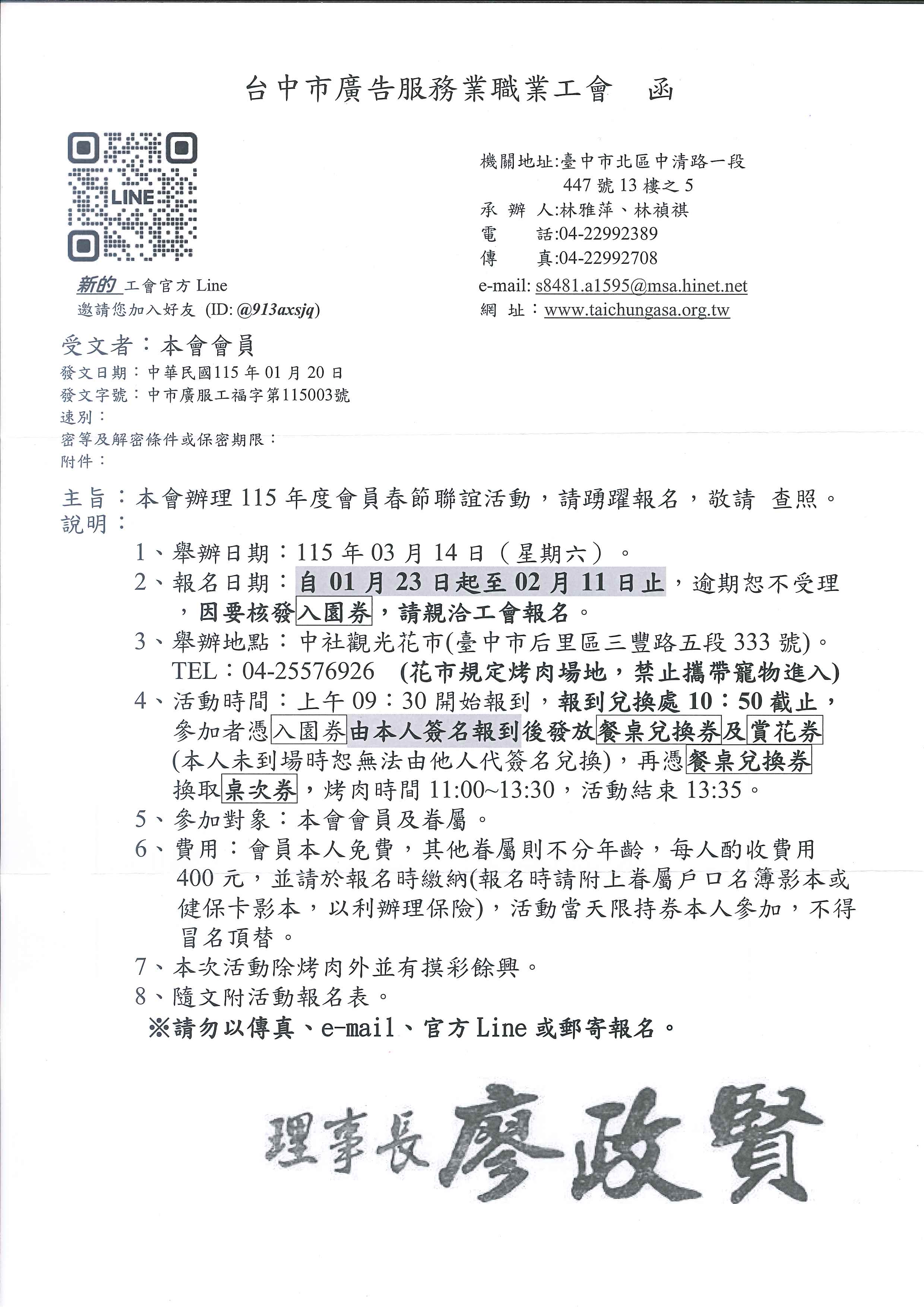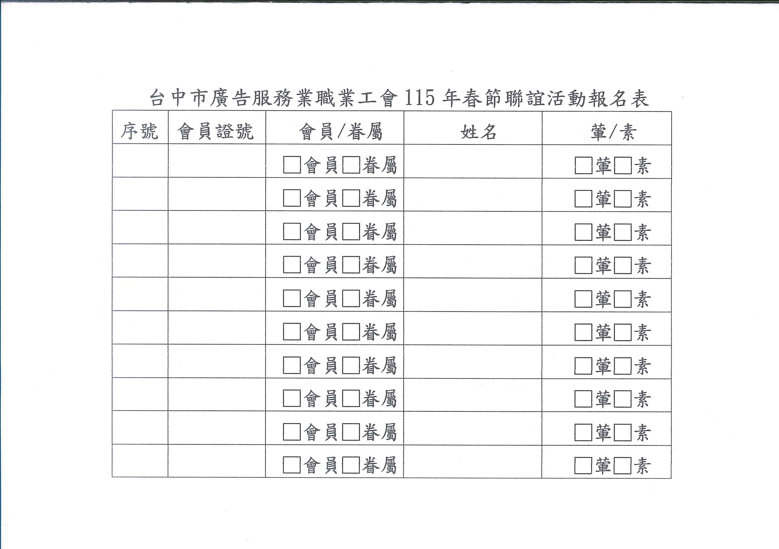 本會辦理115年度會員春節聯誼活動,請踴躍報名,敬請 查照。